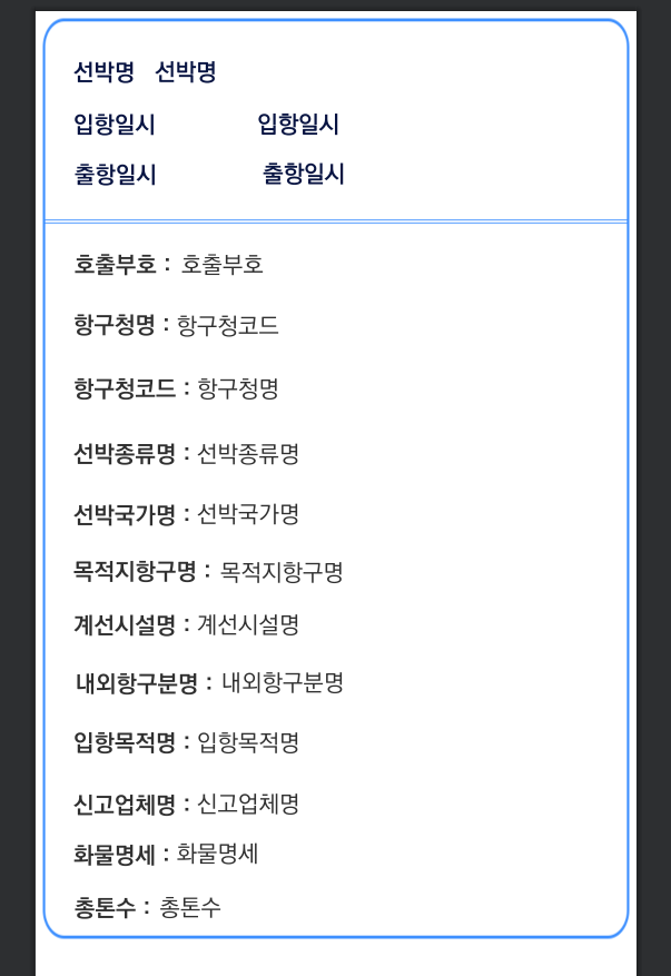 | 호출부호 | clsgn | 내외항구분명 | ibobprtNm | |